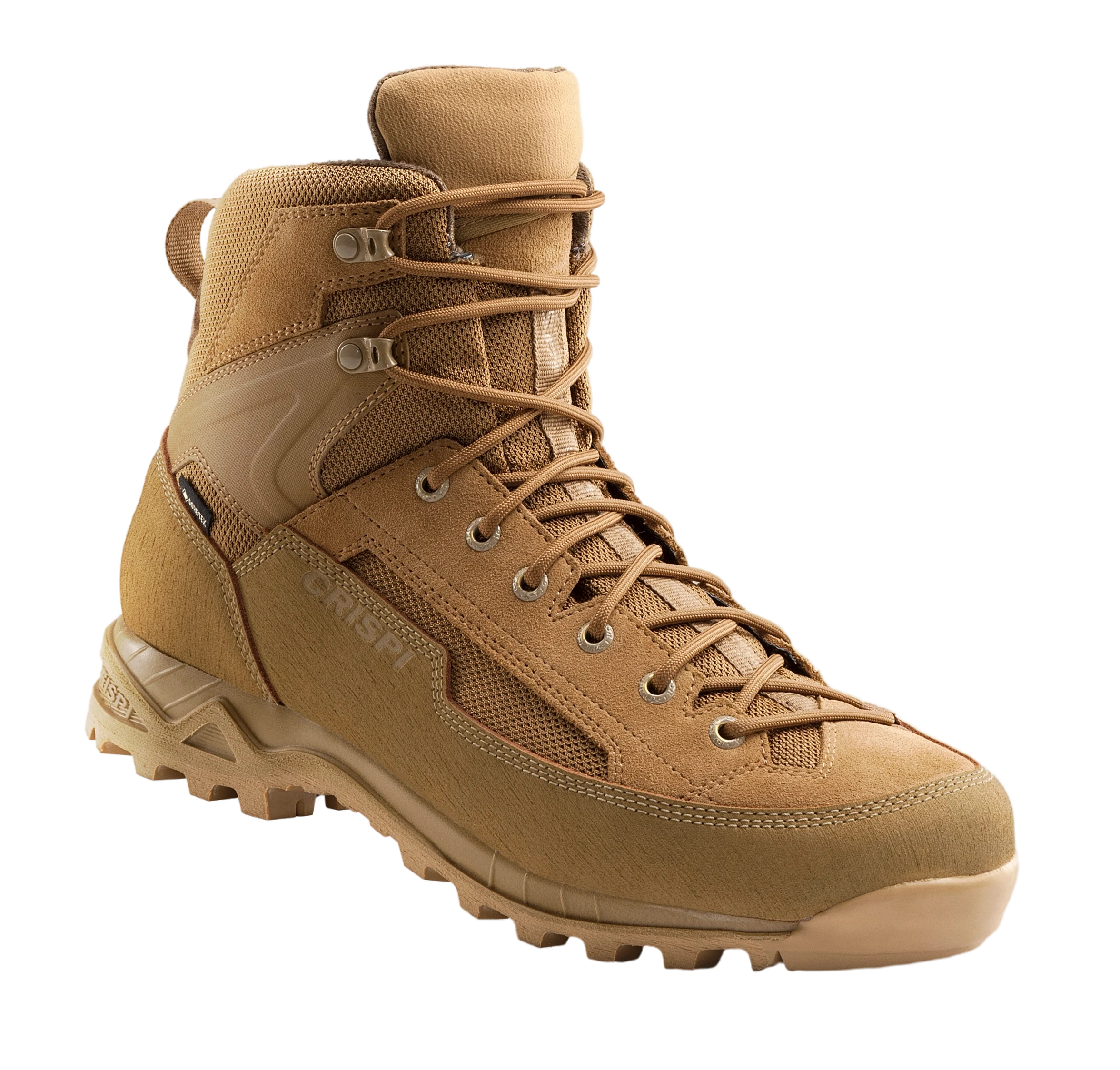 Άνω μέρος: Υδατοαπωθητικό καστόρι και τεχνολογικό ύφασμα υψηλής αντοχής Επένδυση: GORE-TEX® Performance Comfort Footwear Πάτος: Με διαφοροποιημένη δομή Αφαιρούμενος πάτος: CRISPI® Air Mesh + Felt με ενεργό άνθρακα. Εξαιρετική διαπνοή και αντιιδρωτική – αντιοσμική δράση, χάρη στην τεχνολογία CRISPI® 3D Προστασία: Ραμμένη επένδυση (rand) με ενίσχυση από paracord Σόλα: Vibram® Megagrip με πολυουρεθανική ενδιάμεση σόλα απορρόφησης κραδασμών και ένθετο με κυματιστό σχεδιασμό Βάρος: 640 γρ.