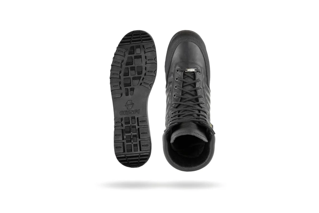 Πάνω μέρος: Υδροαπωθητικό δέρμα full grain Επένδυση: Gore-Tex Insulated Comfort Footwear Εσωτερικός πάτος: Αντιστατικός με ενσωματωμένο σταθεροποιητή Πάτος ποδιού: Αφαιρούμενος, αντιστατικός Προστασία: Αστραγάλου (Malleolus) Σόλα: Ειδική σόλα CRISPI® από καουτσούκ, αντιστατική, ανθεκτική στα έλαια, με αντιολισθητικό προφίλ Βάρος: 770 γρ.